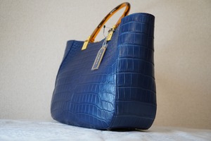 マットクロコ ハンドバッグ(鼈甲風×ショルダー付) ポロサスクロコダイルを贅沢に使用した個性派バッグ。 ブルーとピンクの鼈甲風デザインが、唯一無二の存在感を放ちます。 ショルダーストラップ付きで、華やかさと実用性を両立。 サイズ:22(34)×32×12 cm 素材:ポロサスクロコダイル 価格:¥455,000